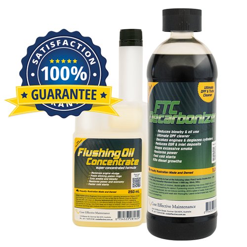 If you’ve got blowby or oil use, it makes sense financially to start by restoring the engine to a clean condition. And it couldn’t be easier! Plus, the cost is low and there’s no downtime either. Simply use our Flushing Oil Concentrate with FTC Decarbonizer, and in 80% of cases, your engine will reduce blow-by and oil use. Most of our customers, who are able to monitor their fuel use, report significant fuel savings after using the product.
